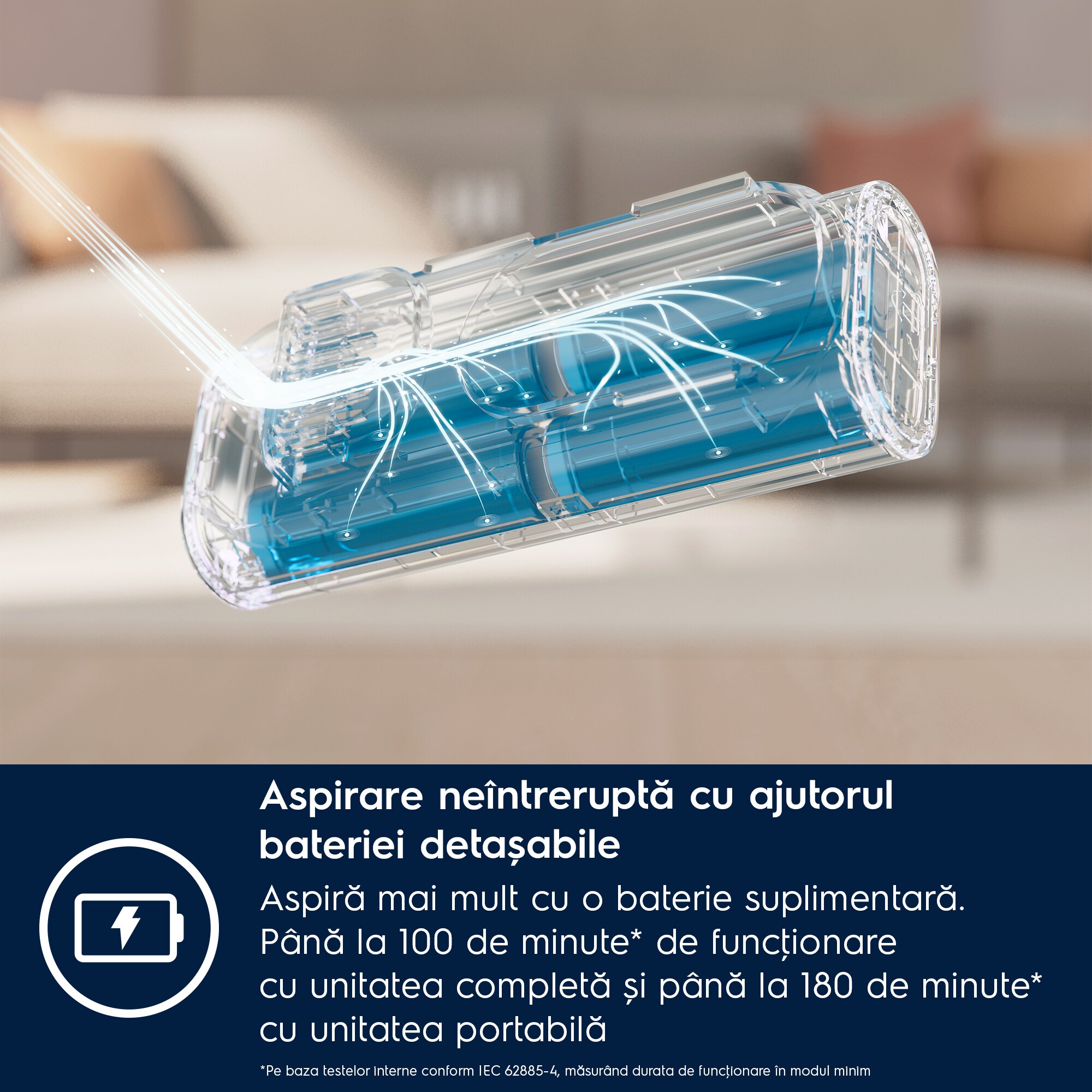 *Pe baza testelor interne conform IEC 62885-4 ce au măsurat timpul de funcționare în modul min.