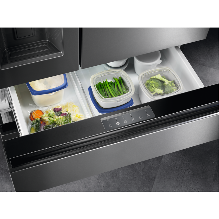 Combina frigorifică MultiSwitch 900 are un compartiment convertibil, pentru care poți seta independent temperatura între -18°C și 7°C. Păstrează alimentele în condiţii optime, reglabile chiar de pe smartphone-ul tău.