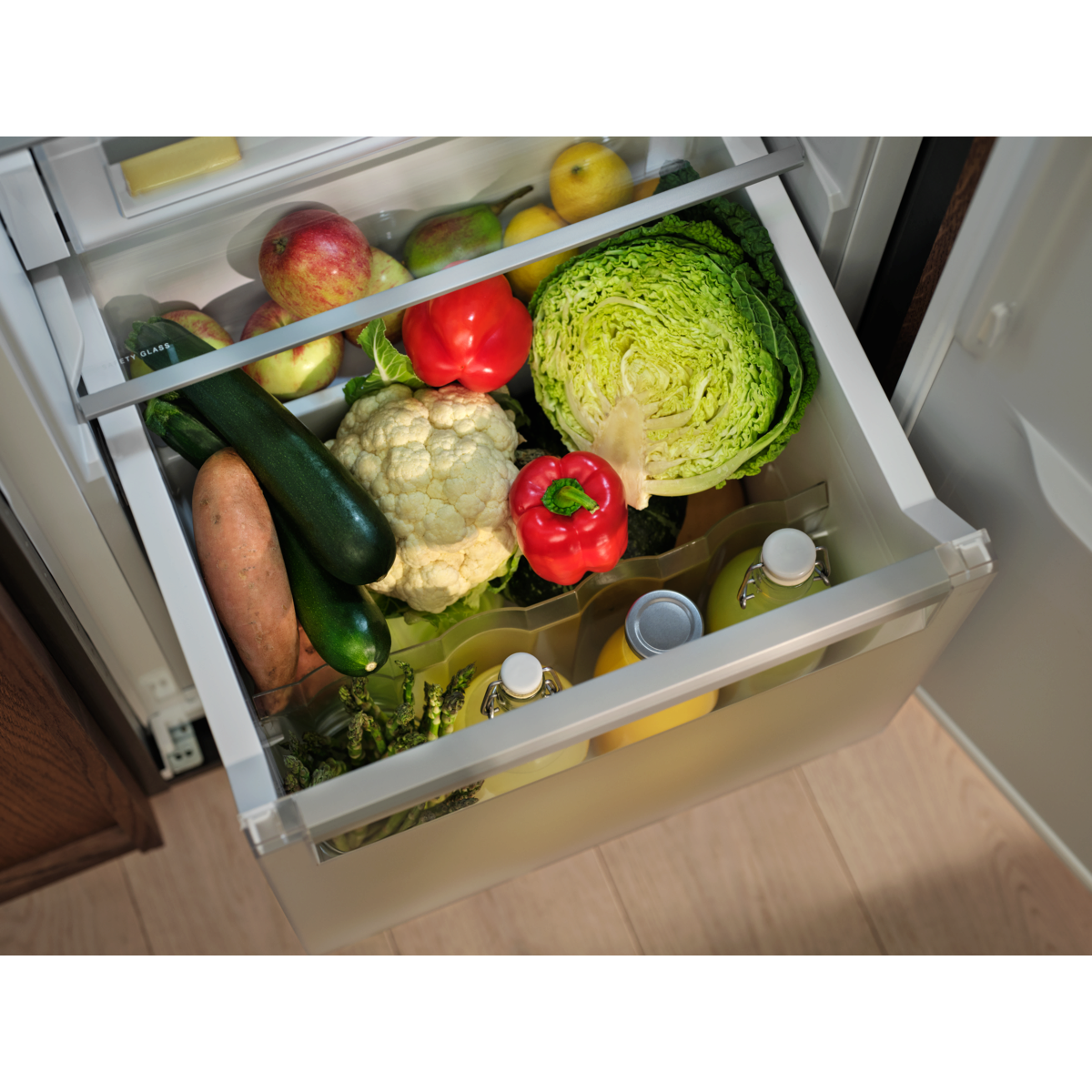 *Pereții interiori rHIPS sunt realizați în proporție de până la 70% din plastic reciclat, ceea ce reprezintă 13% din totalul de plastic al frigiderului
