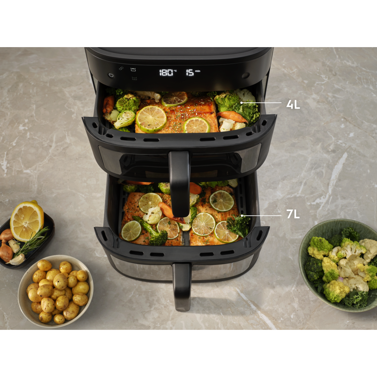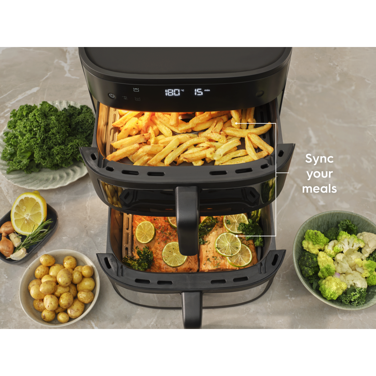 Link Cook: folosește capacitatea de 11 l a ambelor coșuri pentru un preparat