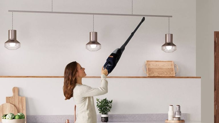 Designul cu înclinare completă și cadrul îngust permit aspirarea spaţiilor de sub mobilier chiar și de 135 mm înălţime.