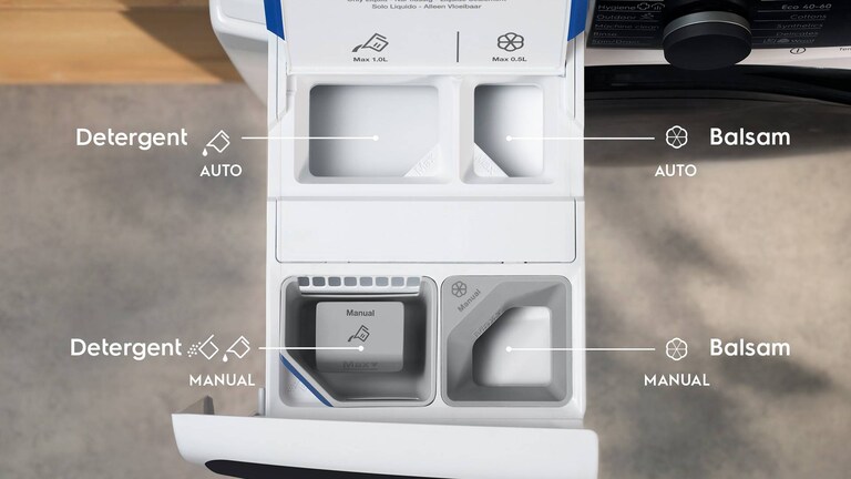 AutoDose® pentru dozare precisă de fiecare dată.AutoDose® adaugă doza exactă de detergent și balsam la fiecare spălare. Ajută la prevenirea supradozării manuale și poate reduce consumul de detergent cu până la 60%.