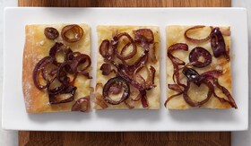 Ceapa caramelizata este o garnitura excelenta pentru aceasta lipie crocanta, conferindu-i dulceata si intensitate.