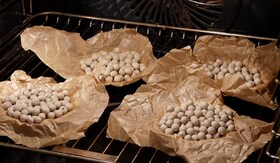 5. Baga tavitele pentru inca 25 de minute la cuptor la aceeasi temperatura si pe acelasi program. Cu 3 minute inainte de finalul programului de coacere, selecteaza functia speciala de gratinat a cuptorului.