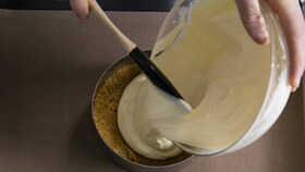 Preîncălziți cuptorul la 180°C, apoi mărunțiți fin biscuiții graham într-un blender. Blenderul nostru Masterpiece este unealta perfectă pentru această sarcină, transformând biscuiții în firmituri în câteva secunde. Amestecați firmiturile cu zahărul și untul topit, apoi presați amestecul într-o formă rotundă de 16 cm. Pentru a obţine un blat crocant, daţi-l la cuptor timp de 10 minute, la 180°C.