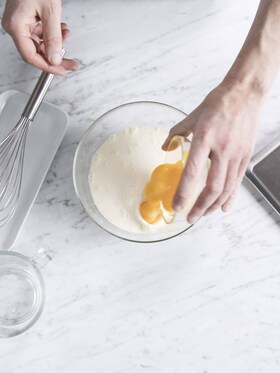 Folosiți Kitchen Assistent pentru a amesteca zahărul, smântâna dulce, miezul păstăii de vanilie (răzuit) și gălbenușurile de ou până când obţineţi o compoziţie omogenă. Apoi, turnați amestecul în vase ramekin pentru cuptor.