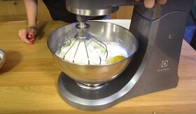 2. Intre timp, pregateste crema de branza. Cu ajutorul robotului AssistentPro amesteca ricotta cu mascarpone, zaharul si coaja rasa de lamaie si portocala pana obtii o consistenta cremoasa. Incorporeaza pe rand ouale, apoi smantana si zeama de lamaie.