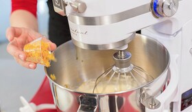 2. Mixeaza galbenusurile si oul cu sarea si zaharul in robotul Kitchen Assistent pana isi dubleaza volumul. Adauga romul, coaja de citrice si vanilia. Omogenizeaza.