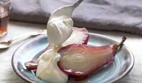2. Se amesteca smantana lichida cu semintele de vanilie la blenderul Masterpiece. Perele se pun pe o farfurie impreuna cu crema de vanilie. Adauga putina miere peste crema, inainte de servire.