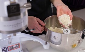 1. Combina untul rece cu faina alba si sarea, precum si zaharul pudra si faina de migdale. Mixeaza la robot pana obtii un mestec nisipos.