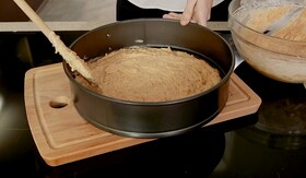 3. Unge cu unt doua tavi rotunde cu fundul detasabil si imparte compozitia in doua parti egale. Baga tavile in cuptorul incins la 180 de grade pe functia de incalzire conventionala sus/jos si uita de ele pentru 35 de minute.