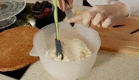 4. Intre timp, pregateste crema de mascarpone. Tot ce trebuie sa faci este sa amesteci crema de branza cu continutul batonului de vanilie. Dupa ce s-au racit bine cele doua blaturi, imbina-le intre ele cu un strat generos de mascarpone, apoi acopera tortul de morcovi cu restul de crema. Decoreaza-l cu fructele proaspete de padure si savureaza-l alaturi de cei dragi! Pofta buna!
