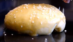 2. Se acopera recipientul cu un prosop de bumbac si se asteapta ca aluatul sa creasca, in jur de 30 de minute, dupa care se modeleaza chiflele, se ung cu ou si se presara cu susan. Se baga tava la cuptorul deja incins, pentru 35 de minute, si se seteaza programul special pentru copt paine. Nu uita sa adaugi apa in recipientul special al cuptorului, pentru abur!