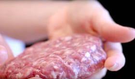 3. In timpul coacerii chiflelor, se modeleaza carnea tocata de vita. Proportia ideala este de 80% carne macra si 20% grasime. Se lasa carnea sa se odihneasca putin la temperatura camerei.