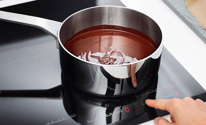 1Topeste ciocolataFoloseste o plita cu inductie pentru a topi delicat 1/2 de ceasca de ciocolata neagra, pana cand aceasta devine fina si omogena.