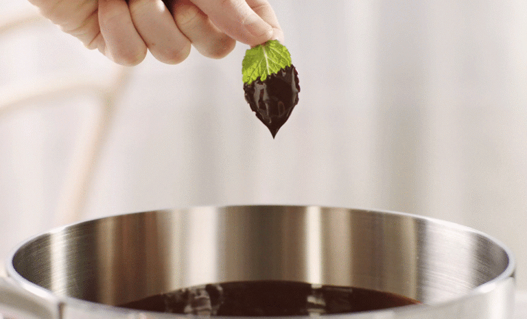 Dupa o masa copioasa, trateaza-ti papilele gustative cu aceasta gustare simpla - frunze de menta invelite in ciocolata congelata. Acestea sunt excelente ca desert de sine statator sau ca o completare la alte deserturi, cum ar fi inghetata si tort. Este simplu sa topesti ciocolata cu caldura delicata a unei plite cu inductie. Bucura-te de rezultate profesionale fara a folosi metode complicate, cum ar fi bain marie. Pentru o experienta diferita, iti sugeram sa incerci aceeasi reteta cu frunze de busuioc, salvie sau flori de lavanda.