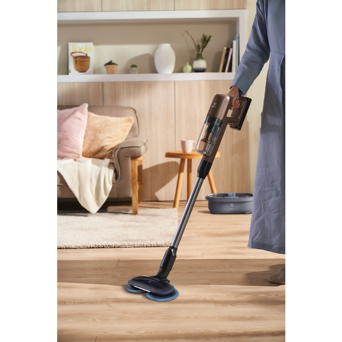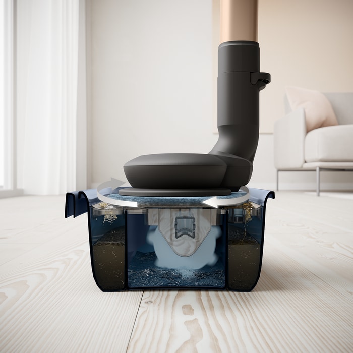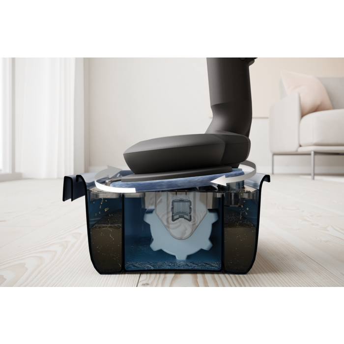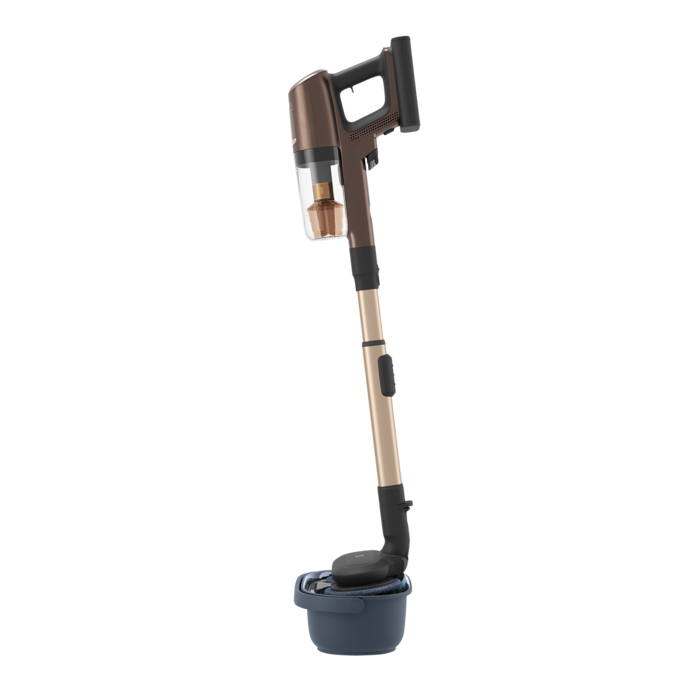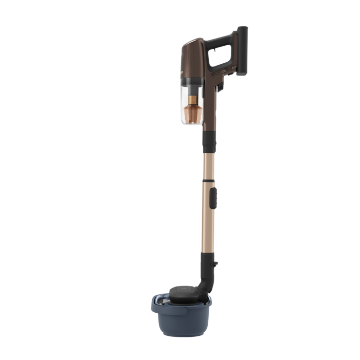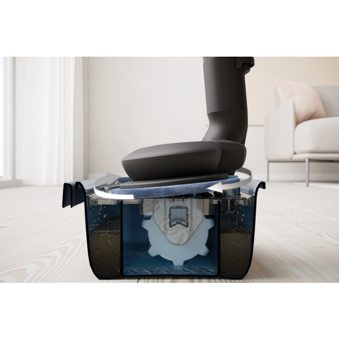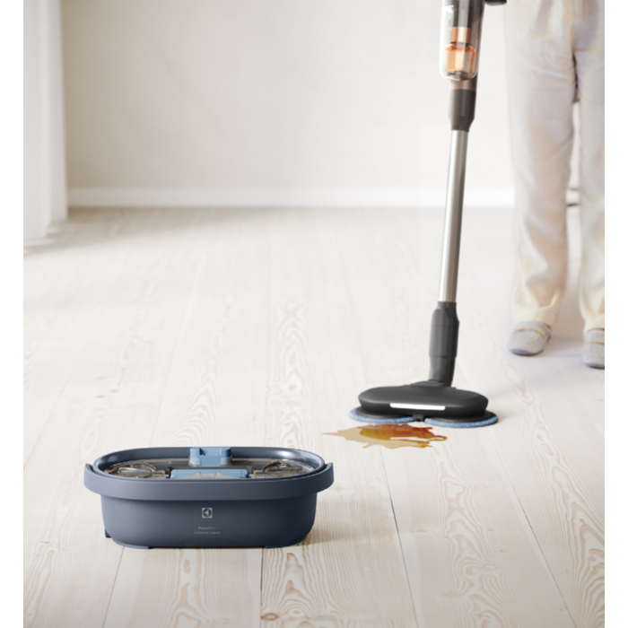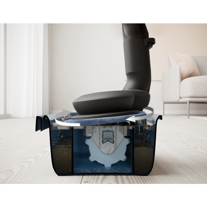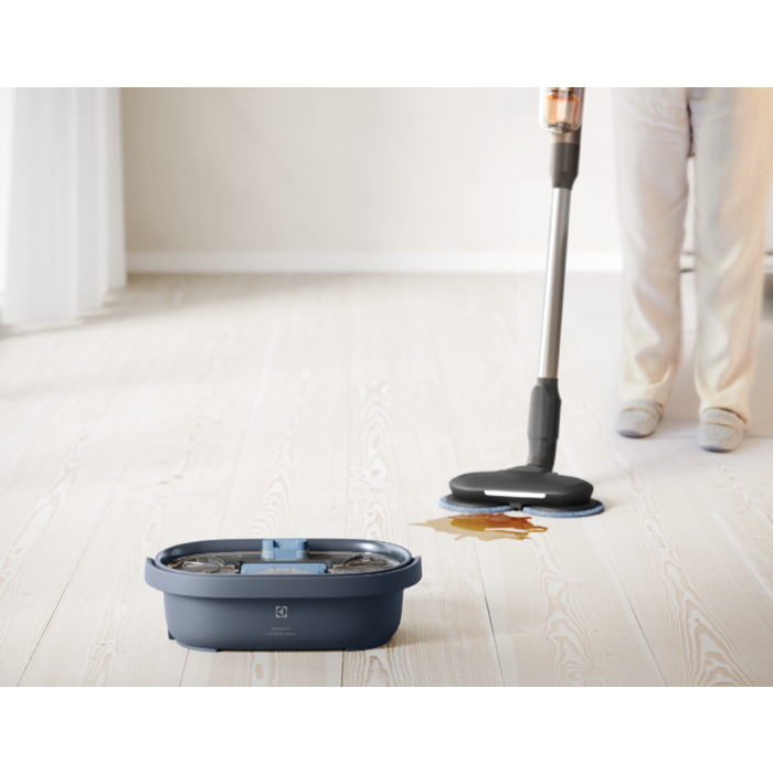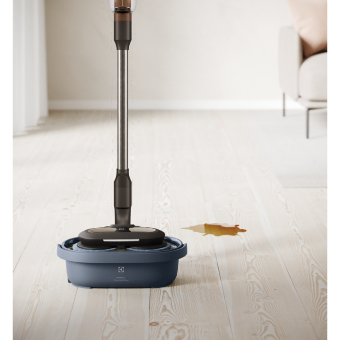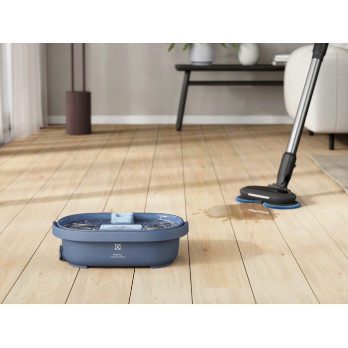 Dotată cu functii de curățare, clătire și uscare a lavetelor de curățare, ajuta la curățarea podelelor fără efort. Stația de curățare este dedicată pentru aspiratoarele verticale cu mop PowerPro.