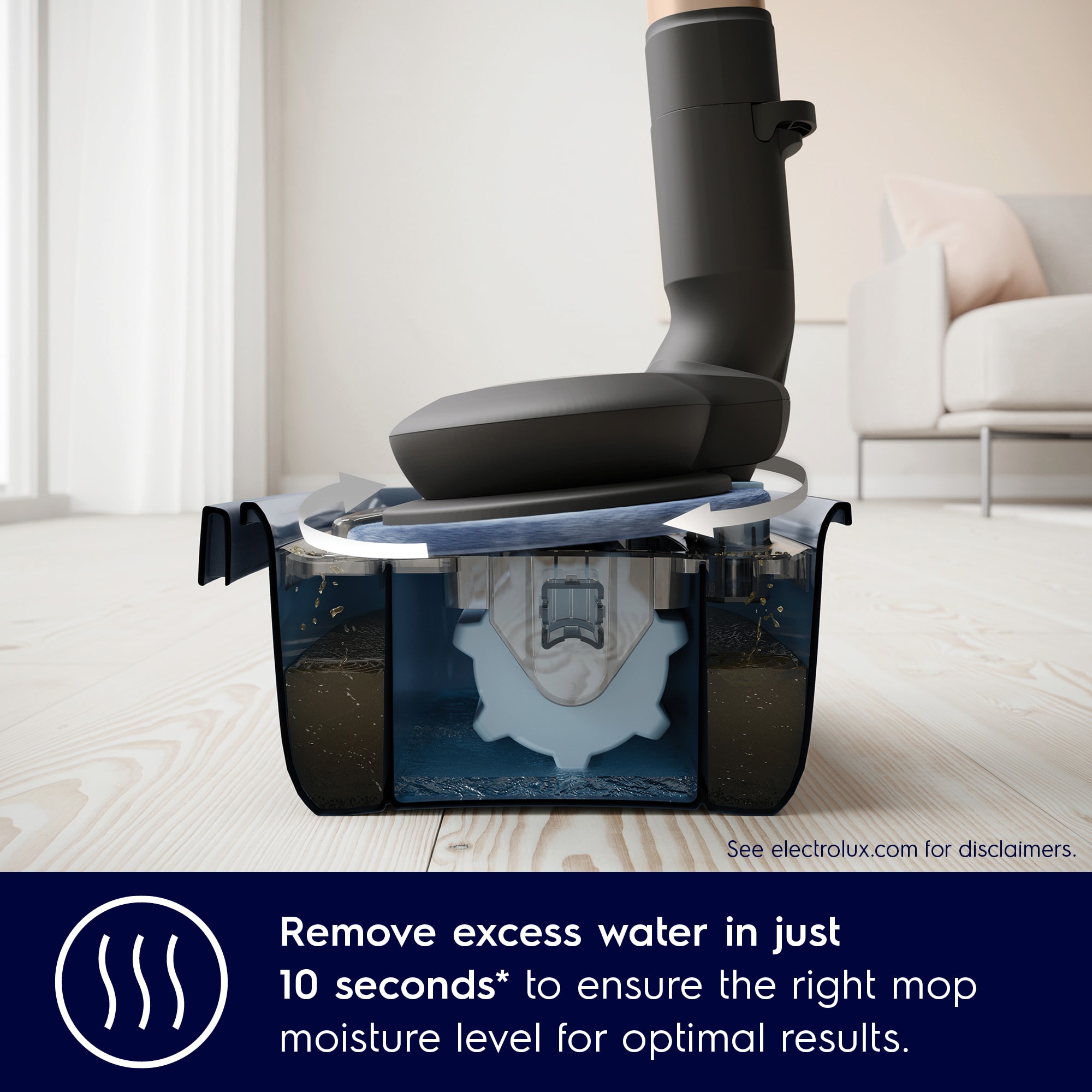 *10 secunde este timpul de clătire recomandat pentru a obține un nivel optim de umiditate pe lavete pentru curățarea casei. Pe baza testelor interne Electrolux.