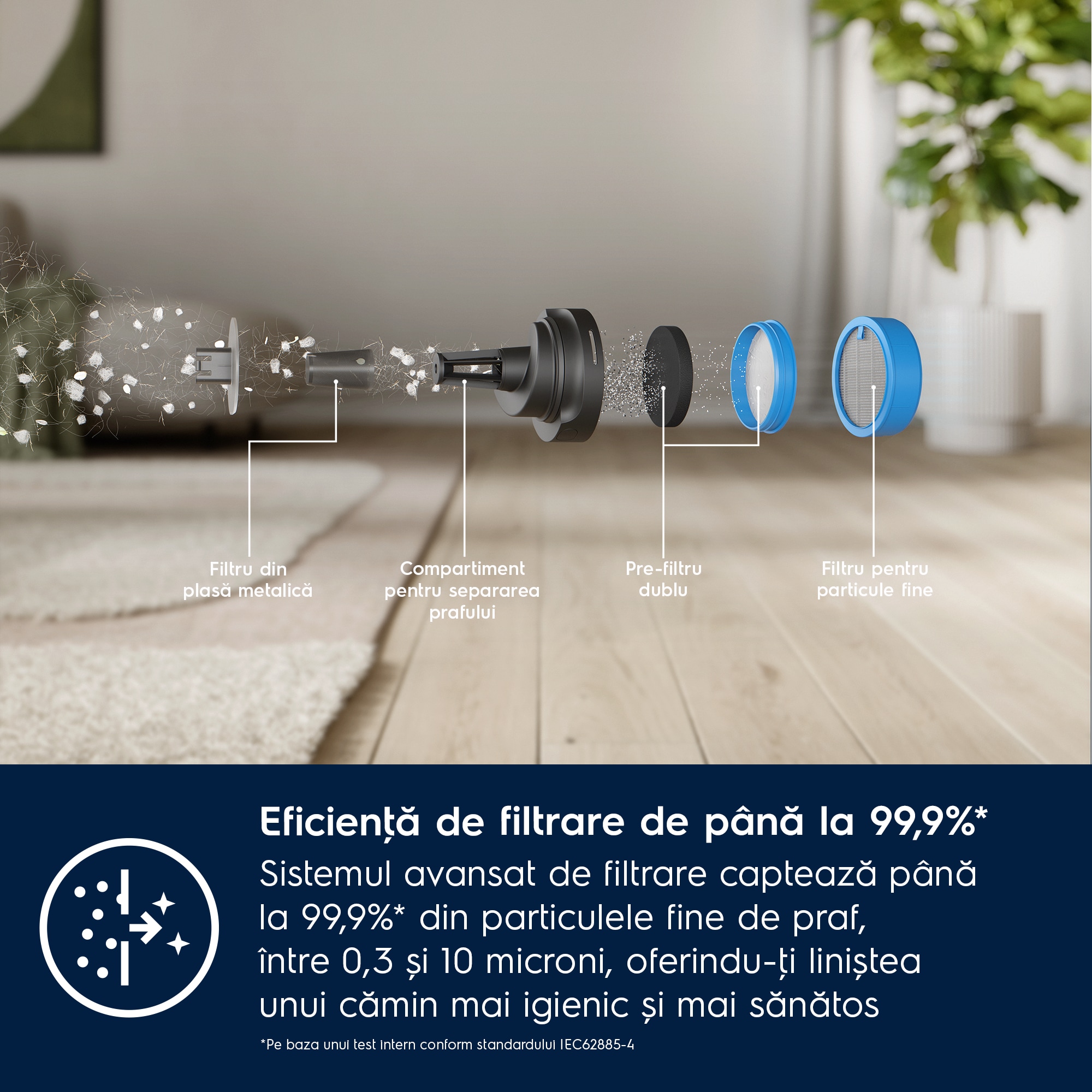 Eficiență de filtrare de până la 99,9%*