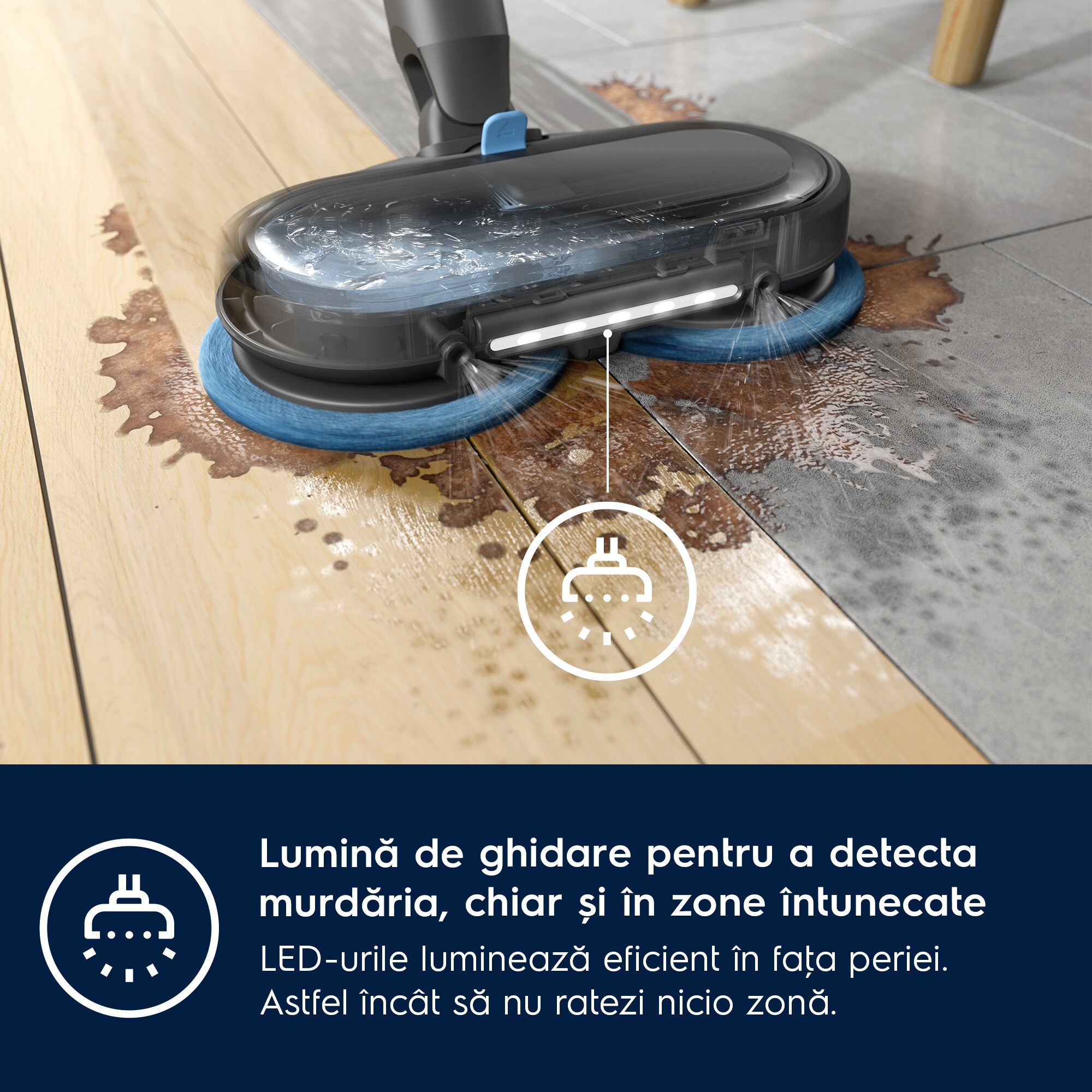 Lumină de ghidare pentru a detecta murdăria, chiar și în zonele întunecate