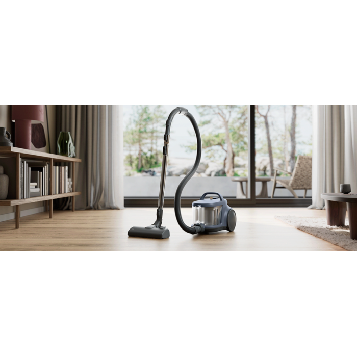 Proiectat pentru confort, acest aspirator are un recipient pentru praf de 2 litri, un design compact pentru depozitare ușoară și un separator ciclonic pentru funcționare fără blocaje. Cu filtrarea HEPA și fiind din plastic reciclat ecologic, este eficient și sustenabil.