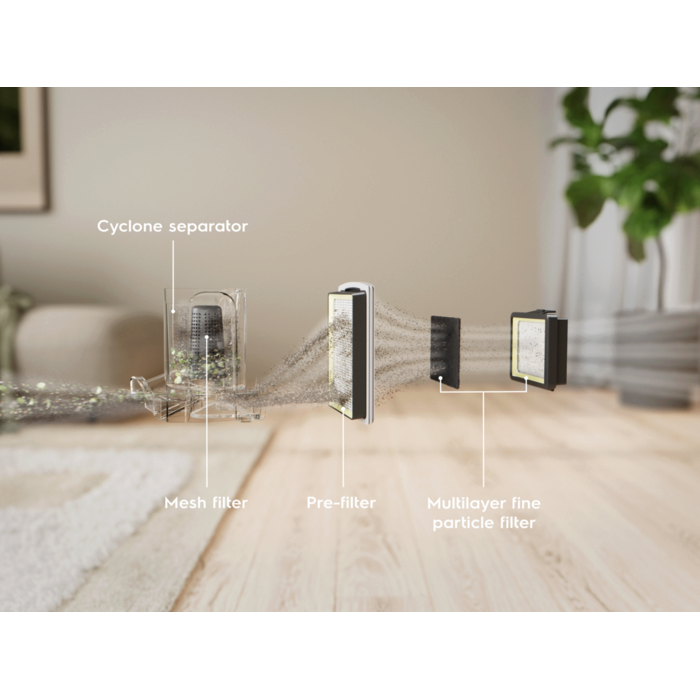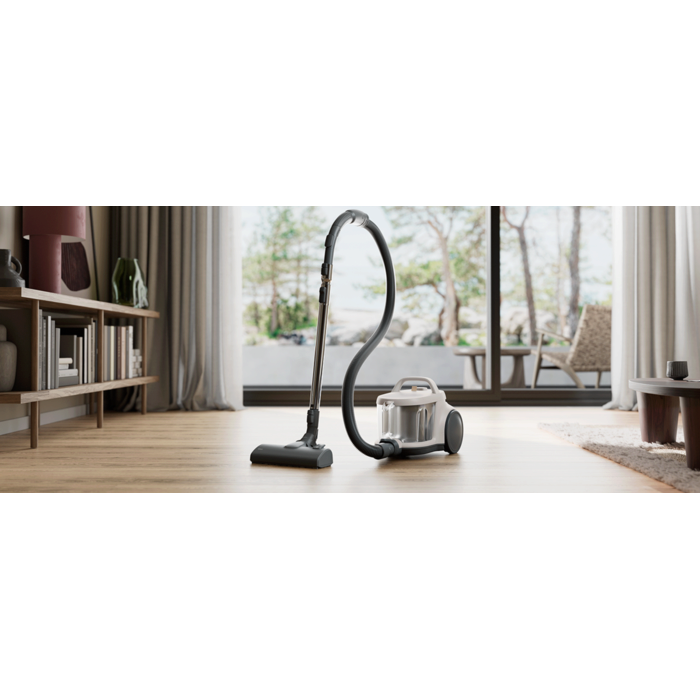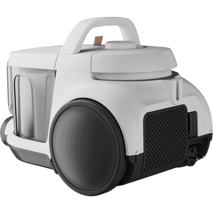 Proiectat pentru confort, acest aspirator are un recipient pentru praf de 2 litri, un design compact pentru utilizare și depozitare ușoară și un separator ciclonic pentru funcționare fără blocaje. De asemenea, este eficient datorită filtrării HEPA și o alegere sustenabilă, pentru că se folosește plastic reciclat în fabricarea aspiratorului.