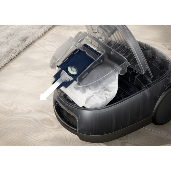 Aspiratorul cu sac Clean 600 combină modul automat pentru pardoseli de pe perie cu o accesibilitate intuitivă pentru performanţă fără compromisuri și mai puţine întreruperi.